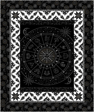 Explore the cosmos with Written in the Stars by Perfect Palette. This glow-in-the-dark collection features intricate star and constellation patterns. Accented by splashes of gold and white linework on a bold black background, this fabric is a stunning addition to your stash.